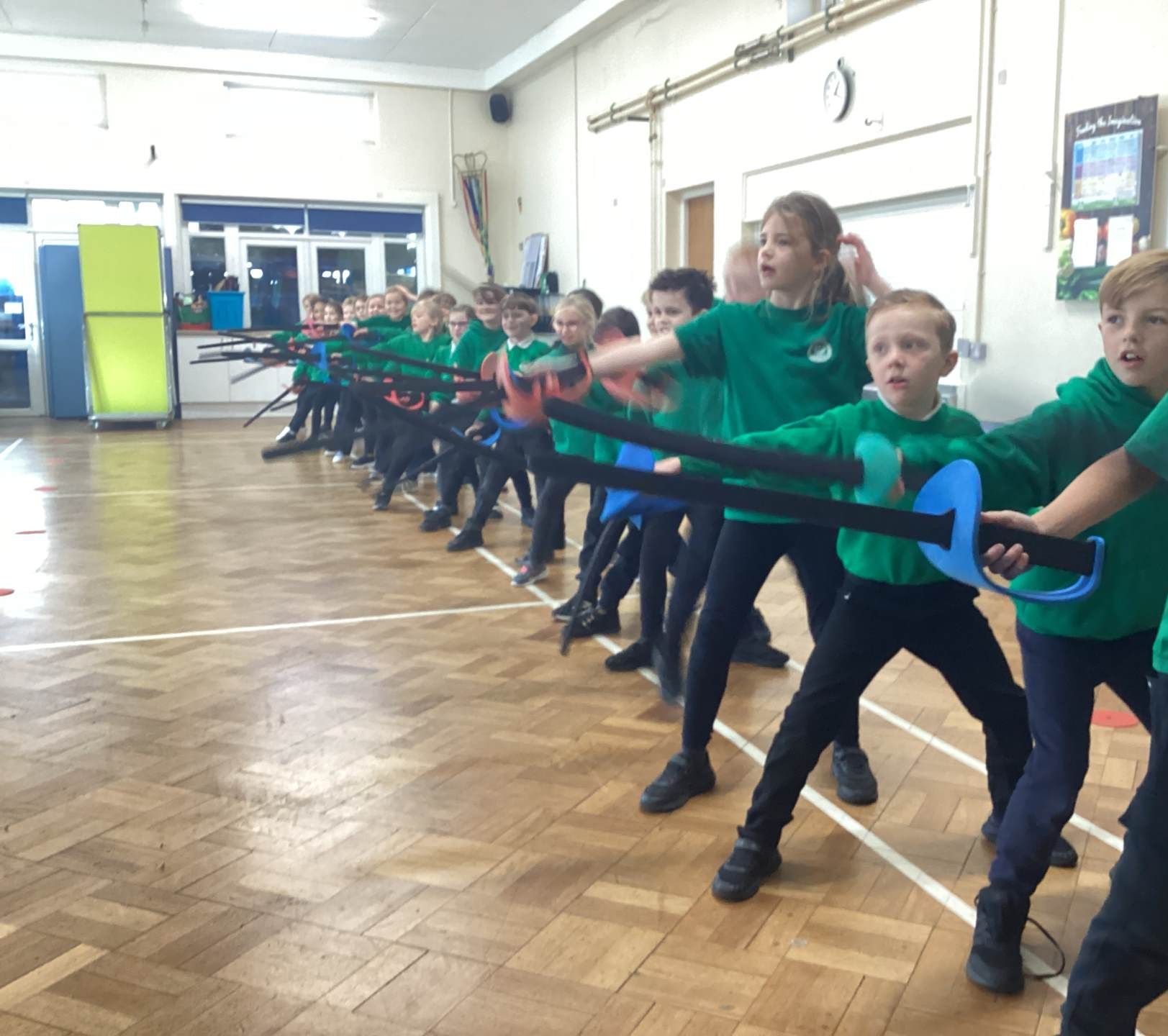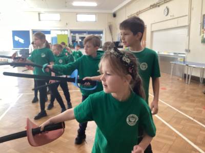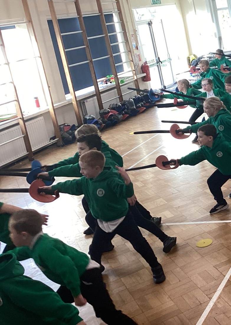 We had a lovely afternoon today with our FitFencing workshop! It was a fantastic introduction to the sport which gave the children the chance to learn and practise the basic movements in a fun and engaging way. We were taught how to stand in the correct fencing stance, move forwards and backwards with control, and use simple attack and defence actions. The session was active and well-structured, with clear demonstrations that helped the children feel confident and excited to try each skill. By the end of the workshop, the class showed great progress and enthusiasm, making it an enjoyable and memorable experience for everyone! Here are some of the things that we learnt: