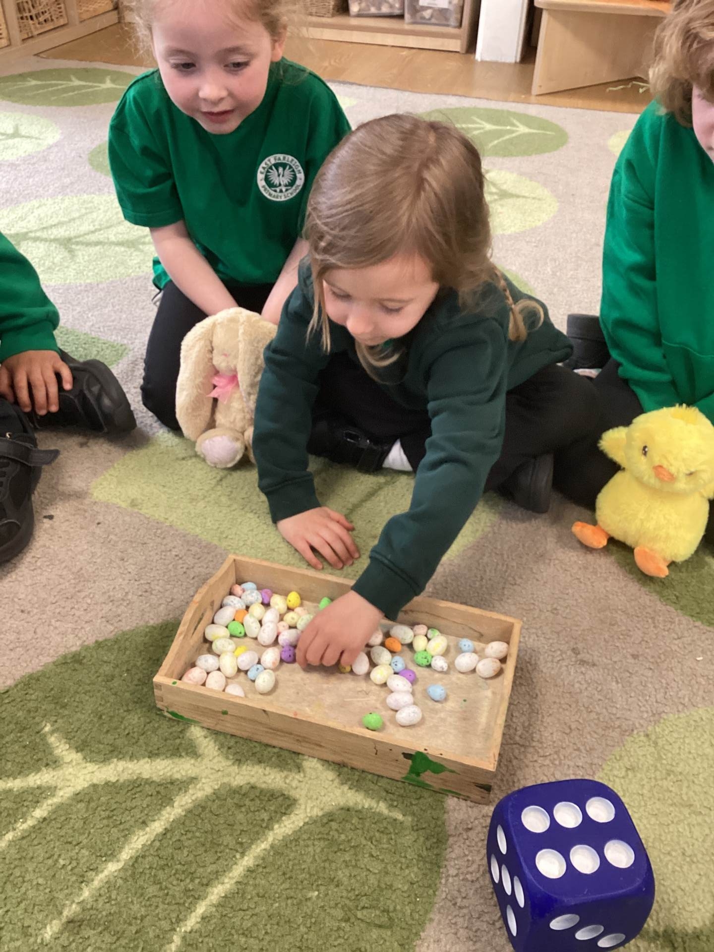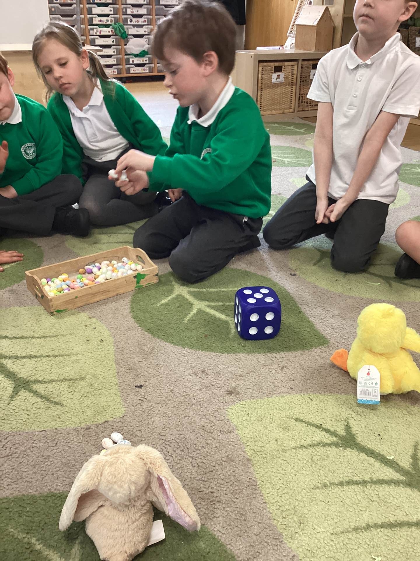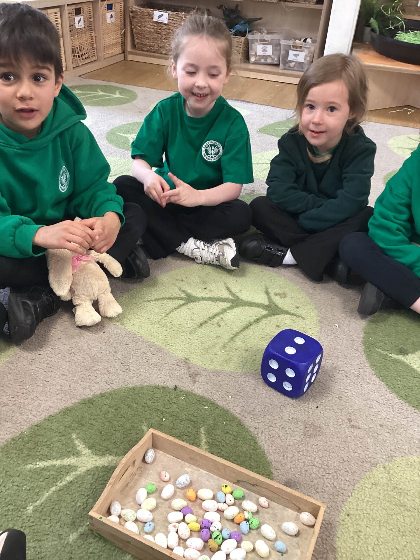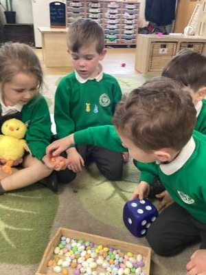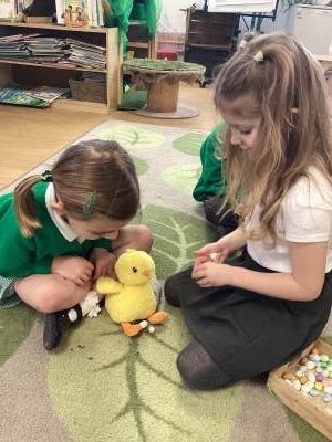 In Maths, we brought our learning to life using bunnies, chicks, and Easter eggs to support our understanding. The children used colourful eggs to create repeating patterns, showing great attention to detail and creativity. We also explored the concepts of “more than” and “less than” while sharing out Easter eggs, helping to build early number skills in a fun and engaging way.