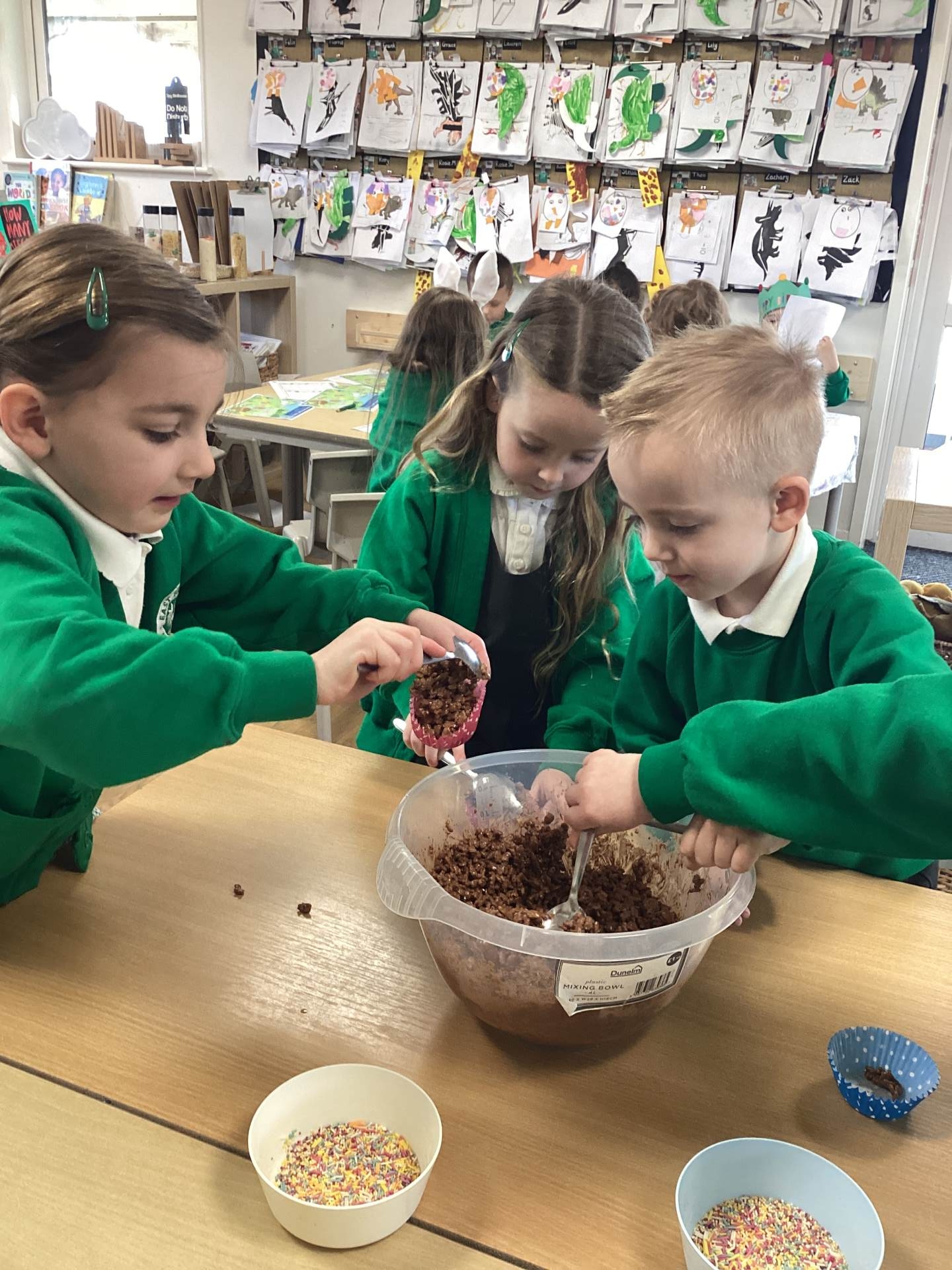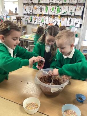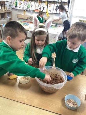 We also embraced the creative side of Easter by designing and making our very own Easter bonnets, ready for our parade with Year 1 and Year 2. The children were incredibly proud of their creations, and it was wonderful to see their individuality shine through. In addition, we have been busy practising our song, Flowers in the Rain, which we performed at the church on Thursday with great enthusiasm. Finally, we couldn't let Easter week pass without a little bit of chocolate, the children enjoyed making their own chocolate nest cakes to take home this week, a sweet treat to reward them for all their hard work this term.