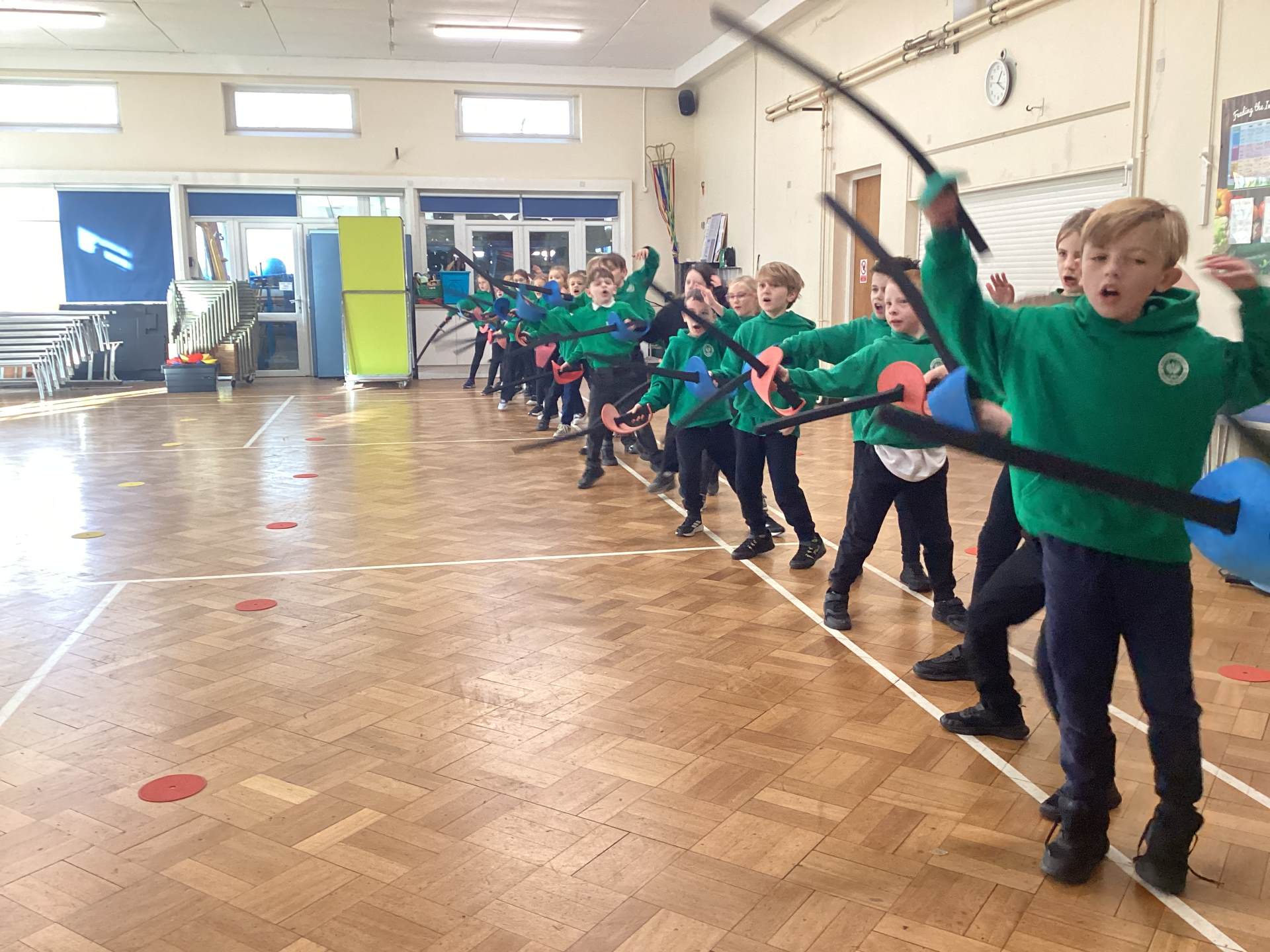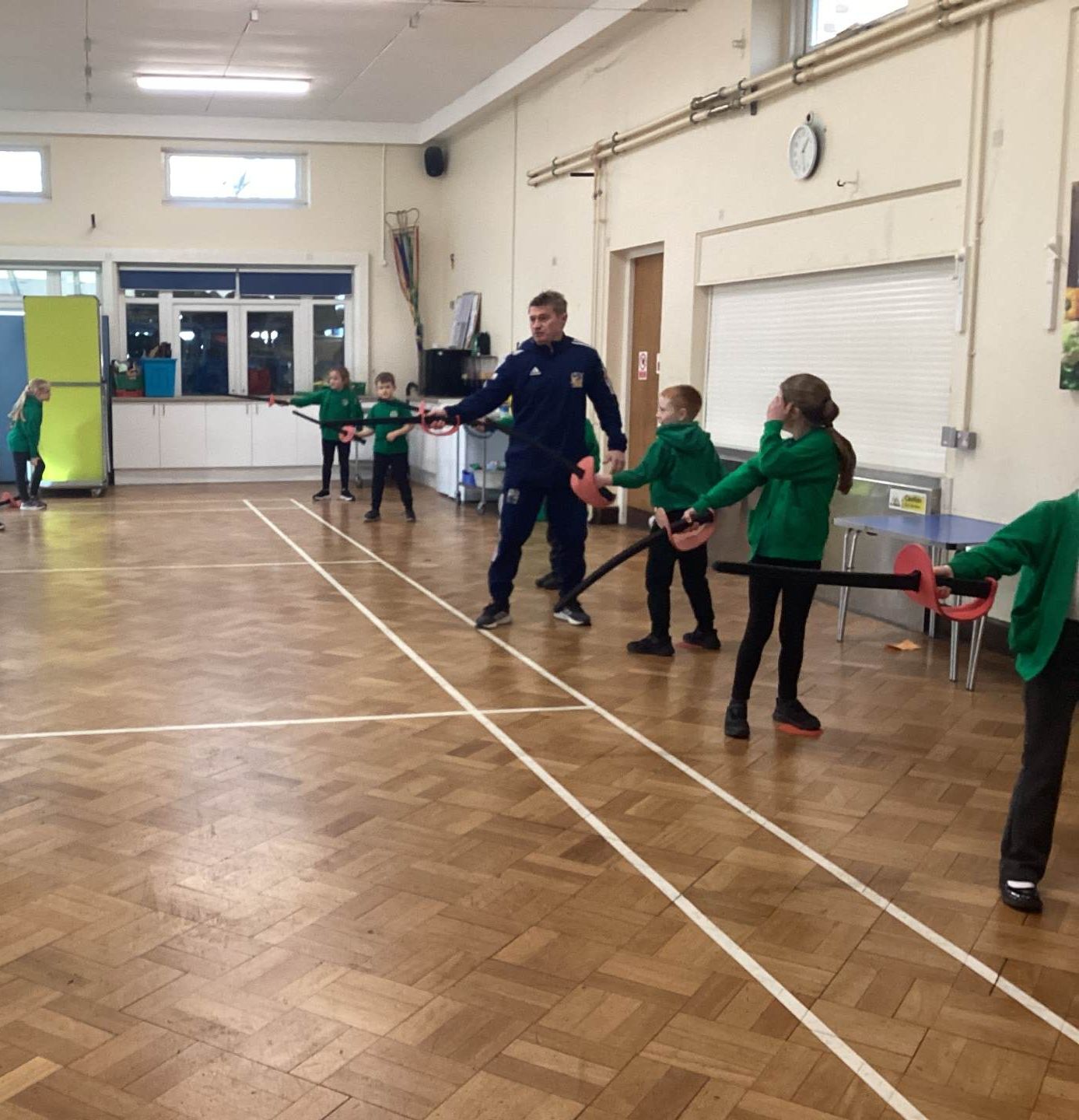 We had a lovely afternoon today with our FitFencing workshop! It was a fantastic introduction to the sport which gave the children the chance to learn and practise the basic movements in a fun and engaging way. We were taught how to stand in the correct fencing stance, move forwards and backwards with control, and use simple attack and defence actions. The session was active and well-structured, with clear demonstrations that helped the children feel confident and excited to try each skill. By the end of the workshop, the class showed great progress and enthusiasm, making it an enjoyable and memorable experience for everyone! Here are some of the things that we learnt: