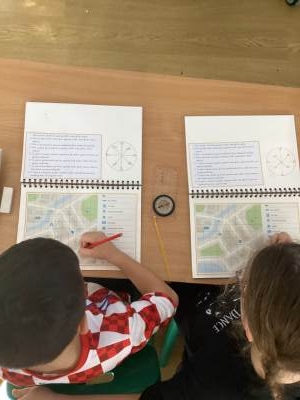 This week, during out outdoor learning, we focused our learning on geographical fieldwork skills. We discovered that the four cardinal directions are north (N), east (E), south (S) and west (W). The four intercardinal (or ordinal) directions are halfway between the cardinal directions: north-east (NE), south-east (SE), south-west (SW) and north-west (NW).